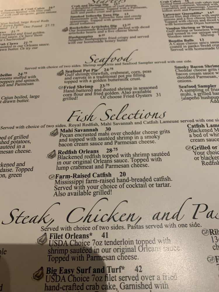 “ I got the pecan crusted Mahi with grits & sweet potatoes creme brûlée. My husband got the fried Catfish & fries . ”